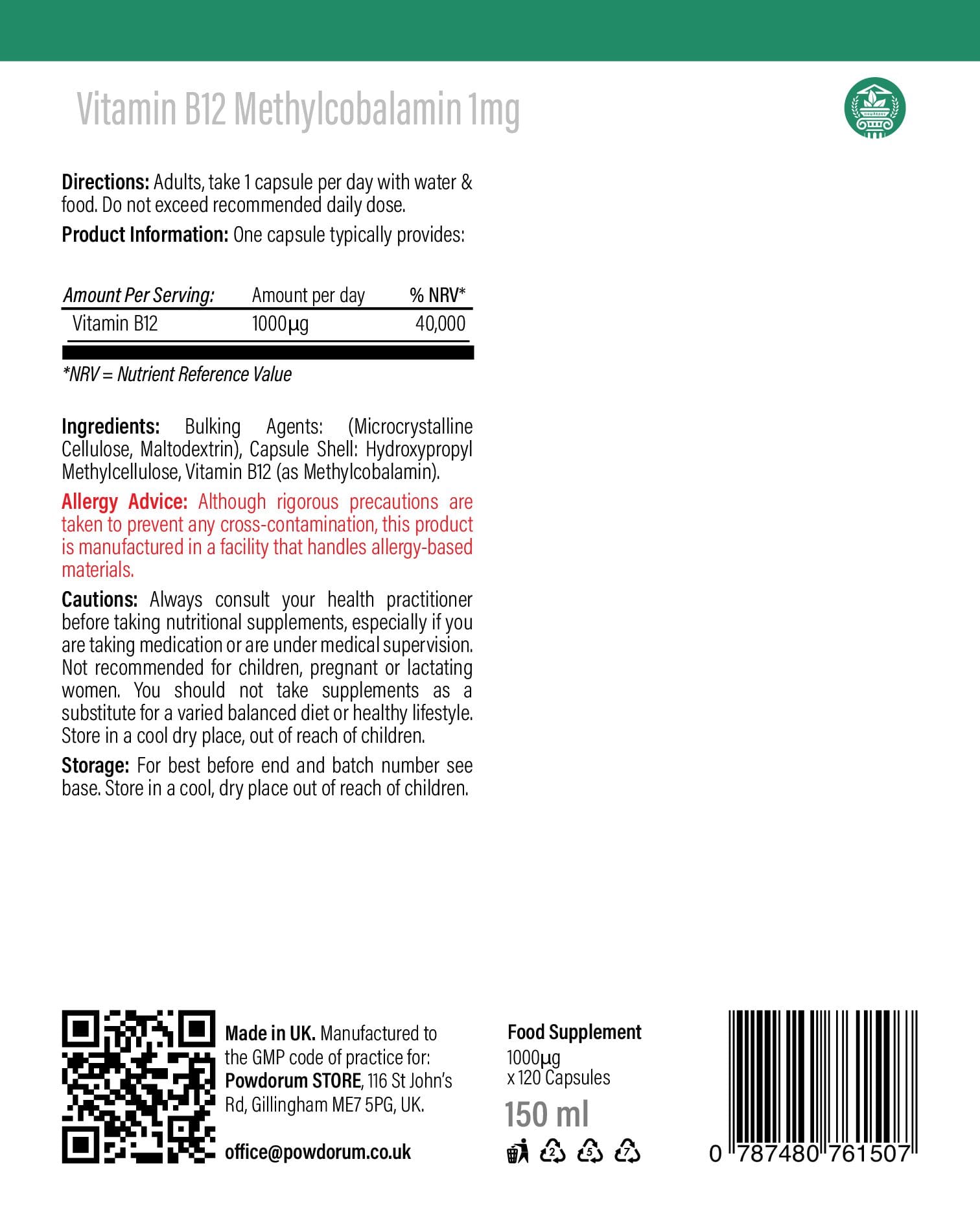 Vitamin B12 Methylcobalamin 1mg - 120 Capsules