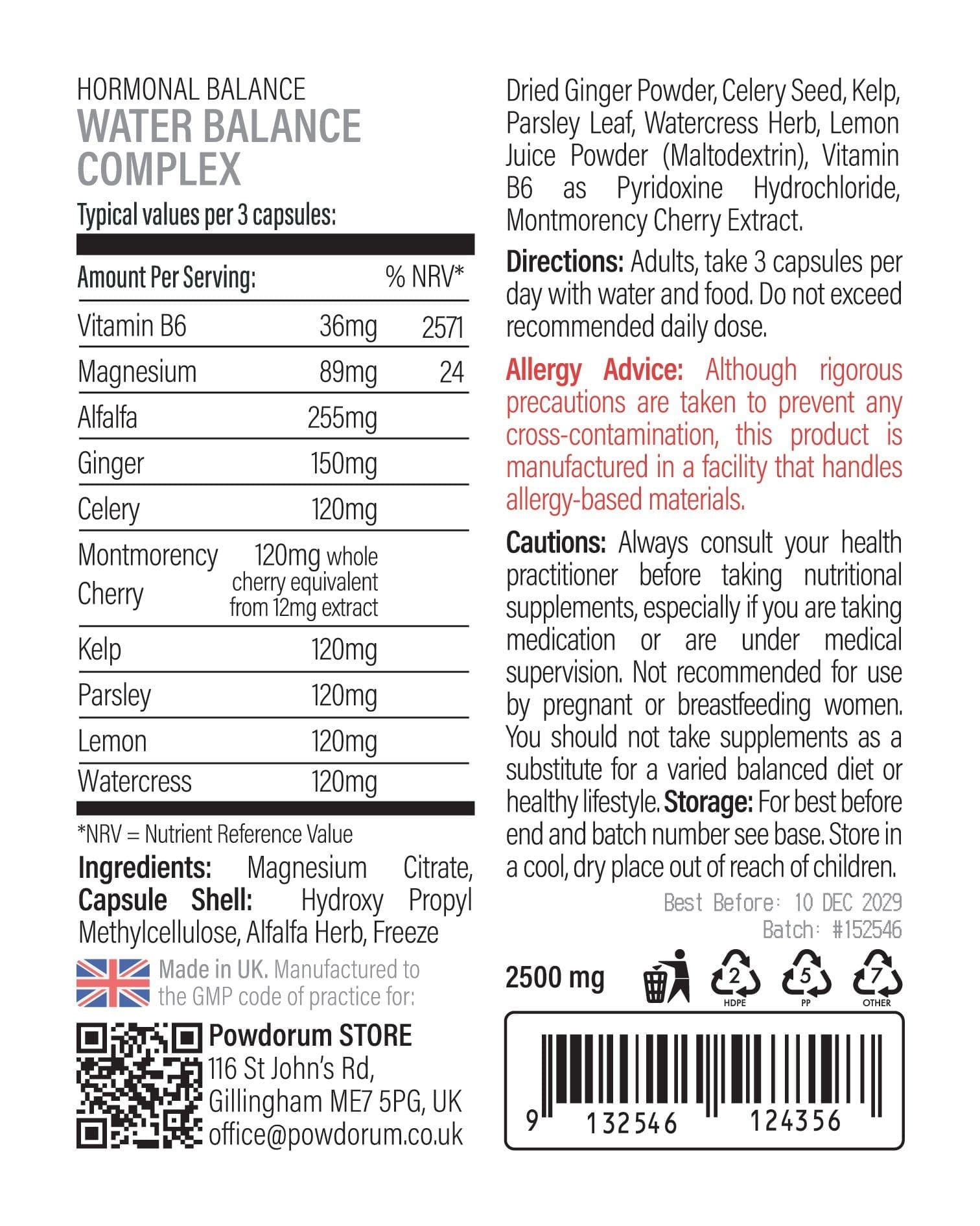 Made in the UK under strict GMP standards, Powdorum’s Water Balance Complex is vegetarian and vegan-friendly, non-GMO, and free from artificial additives.